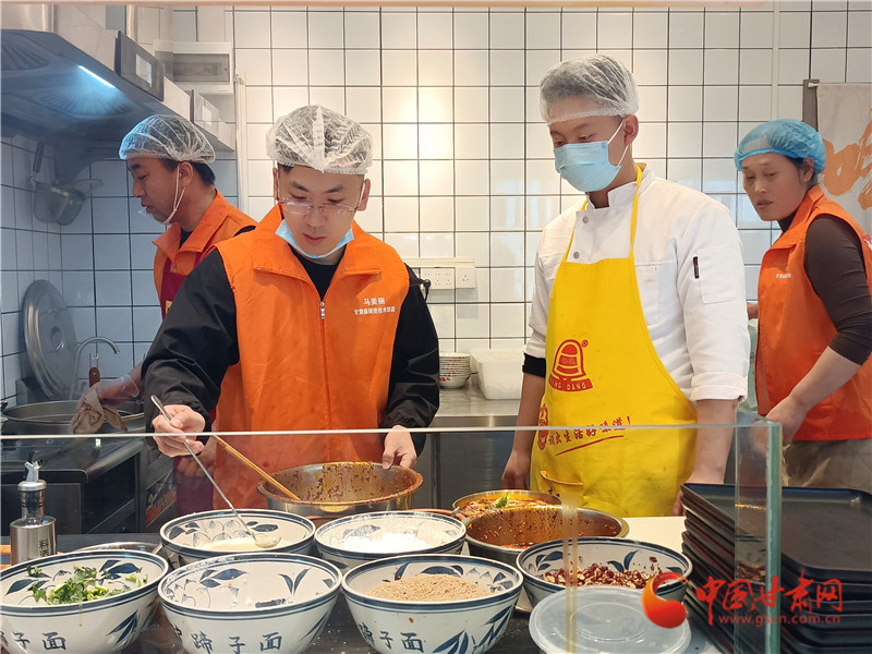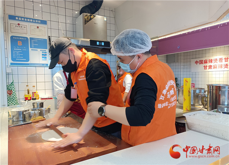 潑辣椒,制作手搟粉,在老師的帶領(lǐng)下,王學(xué)佳一個步驟一個步驟地學(xué)習(xí)天水麻辣燙的要領(lǐng),希望能將正宗的天水麻辣燙帶回東北。