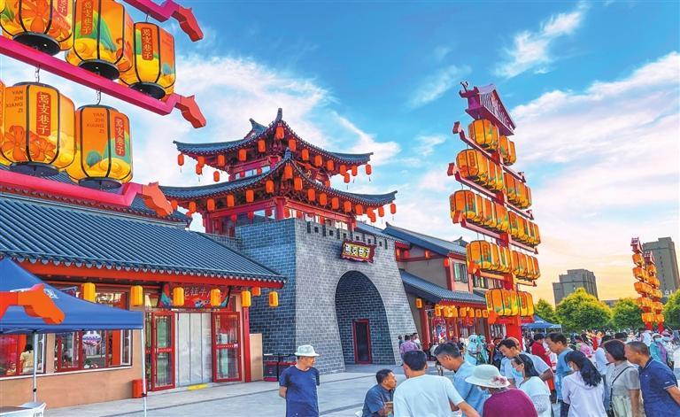 夏日的傍晚,這里格外熱鬧。步入巷內(nèi),穿過仿古牌坊,行走在青石板路上,經(jīng)過新中式仿古的巷子,寬敞的街道兩邊都是仿古的建筑,曲徑通幽處,美食坊,手工作坊,酒吧街,一字兒鋪排開,小攤上當(dāng)?shù)刈灾频纳介狻⑥r(nóng)民自己種的各種蔬菜、自制的各種小工具、精美小籮筐、葫蘆瓢等好多物品勾起了兒時的回憶。
