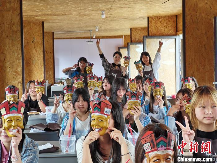 6月4日,德江當?shù)貙W生在博物館體驗畫儺面具。(受訪者供圖)