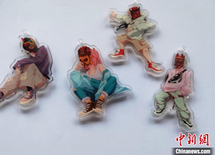 冉勇帶著團隊依照儺戲面具開發(fā)的冰箱貼。周燕玲 攝