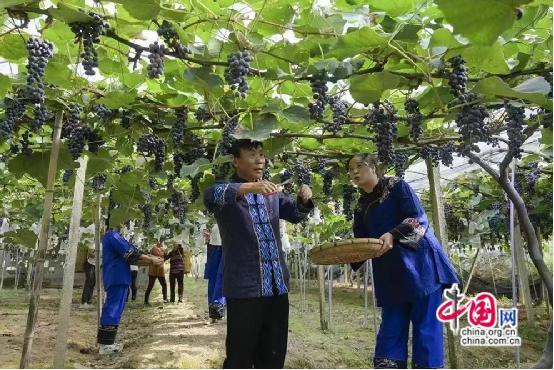 近年來,大坡村以葡萄、獼猴桃等種植基地為基礎(chǔ),積極發(fā)展農(nóng)業(yè)觀光旅游,建設(shè)了葡萄觀光科普長廊、農(nóng)耕文化展示廳、葡萄加工基地、湘西特色產(chǎn)品帶貨點(diǎn)等觀光打卡點(diǎn),形成了“產(chǎn)業(yè)基地+休閑觀光采摘”的農(nóng)旅產(chǎn)業(yè)融合模式。每到周末和節(jié)假日,小村莊便熱鬧起來,來果園采摘、吃農(nóng)家飯、品葡萄酒、購湘西臘味的游客絡(luò)繹不絕。研學(xué)產(chǎn)業(yè)的發(fā)展,進(jìn)一步促進(jìn)了大坡村產(chǎn)業(yè)升級和經(jīng)濟(jì)全面協(xié)調(diào)發(fā)展。