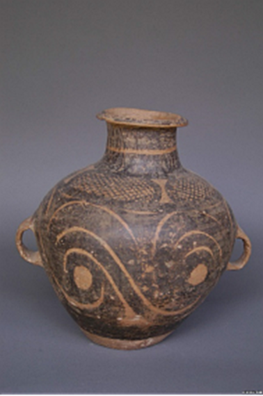(菱格紋彩陶雙耳罐)