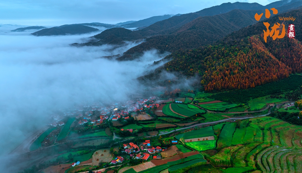 群山環(huán)抱中的鄧家塬橫臥在遠(yuǎn)山的半坡上,那些曾經(jīng)翠綠的樹木,換上了金黃色的外衣,冬小麥發(fā)芽吐綠,將秋日大地裝扮得生機(jī)盎然。