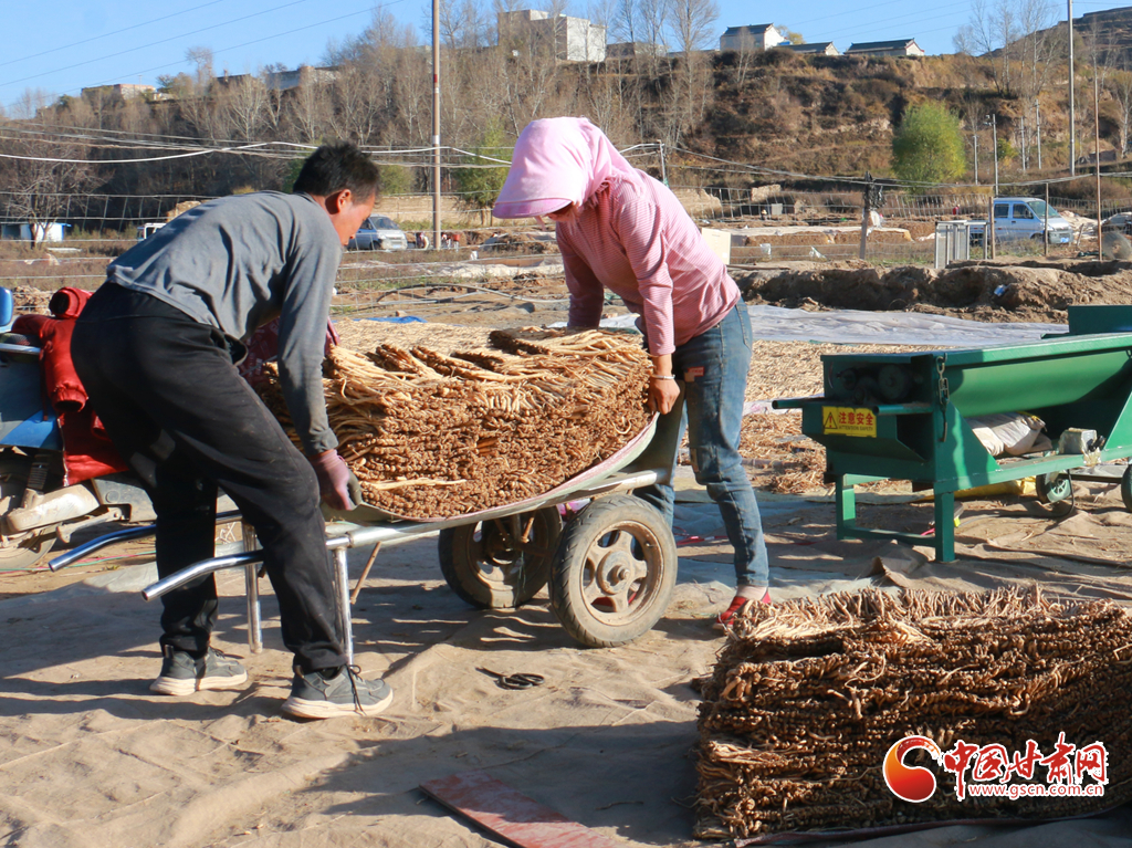 初冬時(shí)節(jié),天氣晴好,走進(jìn)岷縣十里鎮(zhèn),藥香四溢,隨處可見藥農(nóng)利用晴好天氣忙著晾曬中藥材的場(chǎng)景。