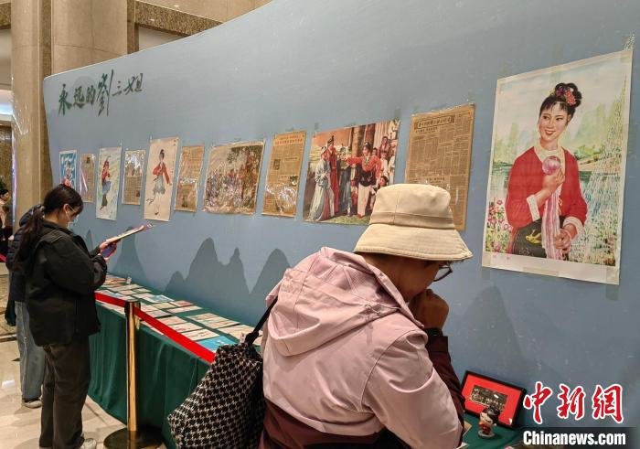 “永遠的劉三姐”小型展覽18日晚也在長安大戲院展出,各種版本《劉三姐》的劇本、歌本、歌片、節(jié)目單,與劉三姐相關的各種海報、唱片、郵品和老報紙等展品吸引觀眾紛紛駐足。