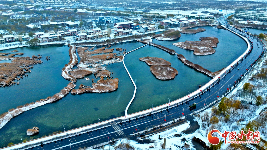 空中俯瞰張掖國(guó)家濕地公園,它宛如一幅寧?kù)o的山水畫(huà),湖畔的垂柳和蘆葦仿佛戴上了潔白的雪帽,顯得格外嫵媚;甘州府城中的仿古建筑在雪景的襯托下更顯寧?kù)o與高雅。古城鐘鼓樓、張掖西站和文津公園等景區(qū),無(wú)一不被銀裝覆蓋,呈現(xiàn)出一種古樸而典雅的美。
