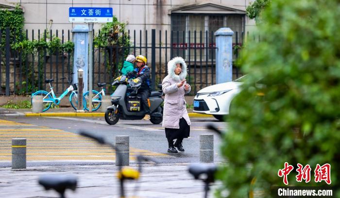 11月25日,市民在街頭出行。當(dāng)日,武漢受寒潮天氣影響,氣溫下降明顯。武漢市氣象臺(tái)24日18時(shí)27分發(fā)布寒潮藍(lán)色預(yù)警信號(hào),受較強(qiáng)冷空氣影響,預(yù)計(jì)24日至26日,武漢最低氣溫降幅達(dá)7℃~9℃。中新社記者 張暢 攝
