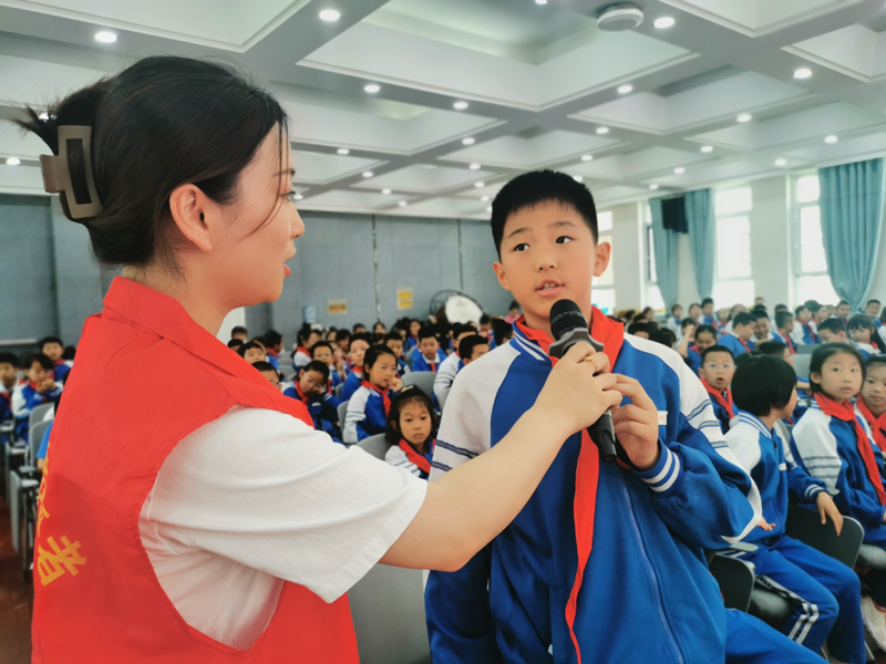 在“文明上網(wǎng)·快樂童行”主題活動中,小學(xué)生回答網(wǎng)絡(luò)文明志愿者的提問。蘭州文明網(wǎng)供圖