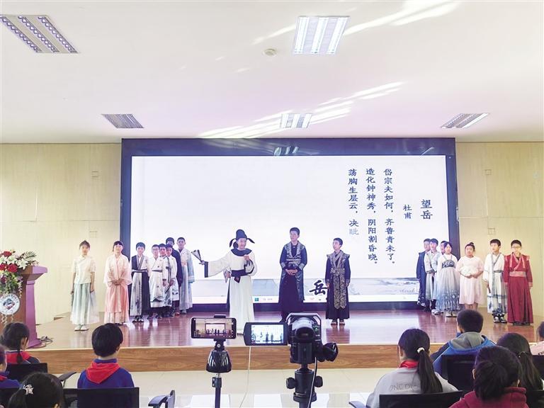 活動現(xiàn)場,燈光柔和,氛圍莊重而溫馨。舞臺上,教師與學(xué)生代表們身著古裝,仿佛將觀眾帶入了千年前的唐朝。他們的表演深情而投入,每一個動作、每一句臺詞都充滿了對杜甫及其時代的敬意。