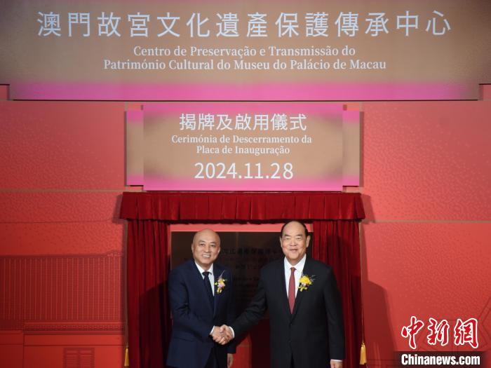由澳門特區(qū)政府與中國(guó)文化和旅游部(文旅部)合作籌建的“澳門故宮文化遺產(chǎn)保護(hù)傳承中心”(下稱“中心”)28日下午舉行揭牌及啟用儀式,澳門特區(qū)行政長(zhǎng)官賀一誠(chéng)與故宮博物院院長(zhǎng)王旭東共同為中心揭牌。