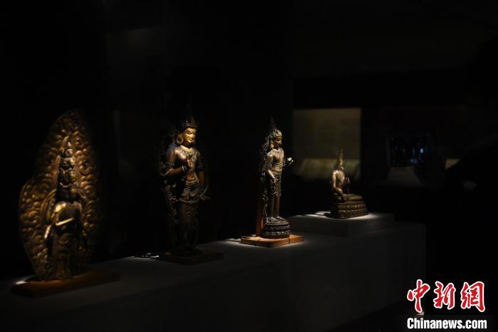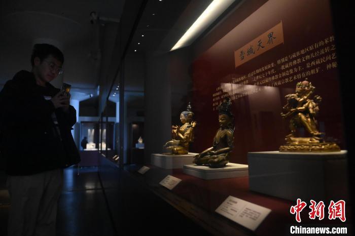 11月28日,甘肅省敦煌市,敦煌研究院敦煌石窟文物保護(hù)研究陳列中心《披沙揀金——敦煌研究院館藏文物擷英展》中的勝樂金剛像。該展由敦煌研究院主辦,2024年下半年煥新布展,展出了不同類型館藏文物,通過這些文物蘊(yùn)含的豐富歷史信息,展現(xiàn)了敦煌文化的多元與包容,勾勒不同文明偕行共進(jìn)的歷史脈絡(luò)。中新社記者 李亞龍 攝