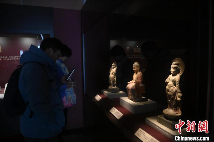 11月28日,甘肅省敦煌市,敦煌研究院敦煌石窟文物保護(hù)研究陳列中心,游人參觀《披沙揀金——敦煌研究院館藏文物擷英展》中的塑像。該展由敦煌研究院主辦,2024年下半年煥新布展,展出了不同類型館藏文物,通過這些文物蘊(yùn)含的豐富歷史信息,展現(xiàn)了敦煌文化的多元與包容,勾勒不同文明偕行共進(jìn)的歷史脈絡(luò)。中新社記者 李亞龍 攝