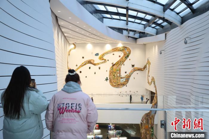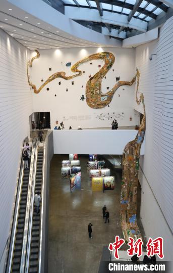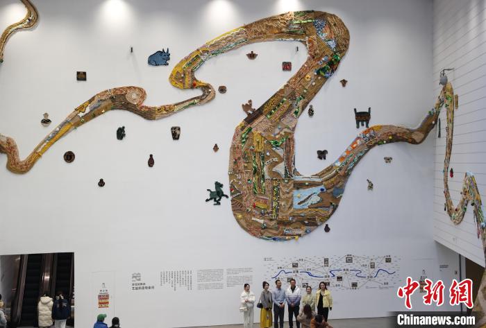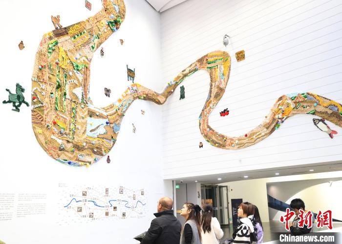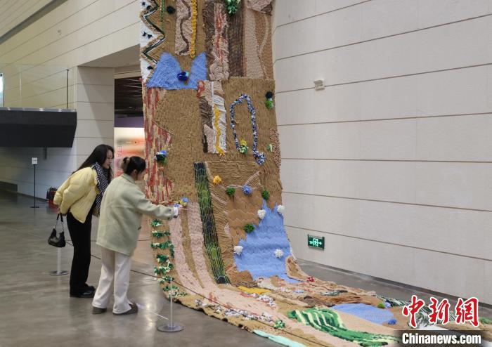 12月8日,市民在寧夏銀川當(dāng)代美術(shù)館欣賞“奔流的舞姿:藝起織造母親河”藝術(shù)展。當(dāng)日,“奔流的舞姿:藝起織造母親河”公益項(xiàng)目藝術(shù)展在銀川當(dāng)代美術(shù)館正式對公眾開放。該項(xiàng)目匯聚了黃河兩岸200余位織手的巧作,按照黃河特點(diǎn)和視覺審美拼接和織造,織造出一個(gè)極具視覺效果的“大河”,通過藝術(shù)的橋梁,展示奔涌黃河的優(yōu)美舞姿和不息精神,同時(shí)激發(fā)社會各界對黃河生態(tài)保護(hù)的共識與行動。中新社記者 于晶 攝