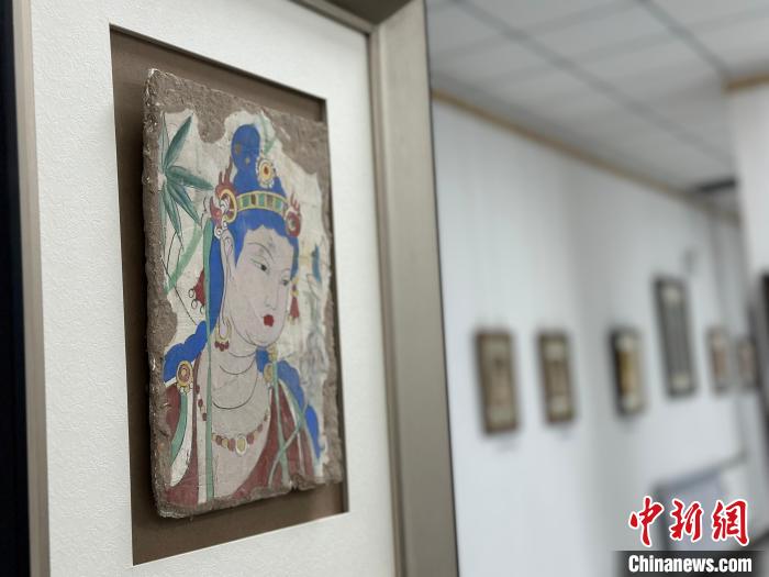 12月17日,由蘭州市七里河區(qū)委宣傳部、七里河區(qū)文體旅局聯(lián)合舉辦的“大漠孤陽映彩霞 敦煌神韻美如畫”新時代文明實踐主題活動暨敦煌巖彩畫書畫藝術(shù)展拉開帷幕。圖為展出的敦煌莫高窟壁畫題材巖彩畫。楊娜 攝