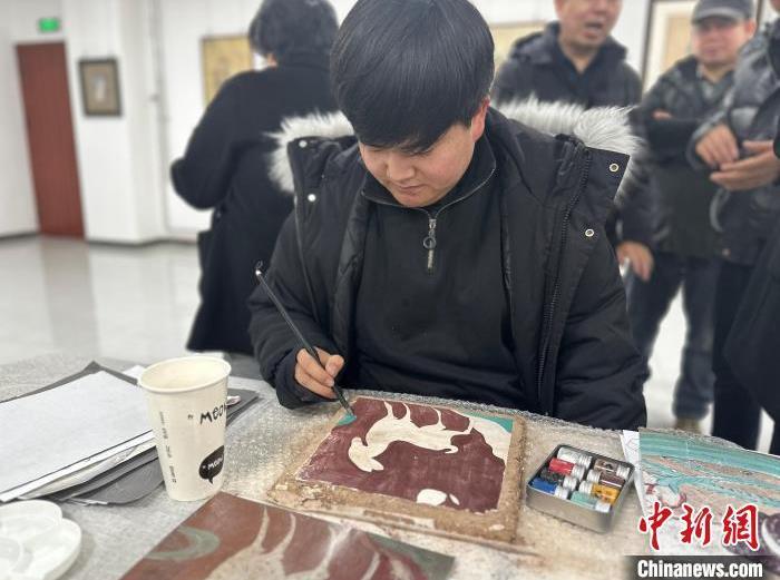 12月17日,由蘭州市七里河區(qū)委宣傳部、七里河區(qū)文體旅局聯(lián)合舉辦的“大漠孤陽映彩霞 敦煌神韻美如畫”新時代文明實踐主題活動暨敦煌巖彩畫書畫藝術(shù)展拉開帷幕。圖為繪畫愛好者現(xiàn)場學(xué)習(xí)繪制巖彩畫。楊娜 攝