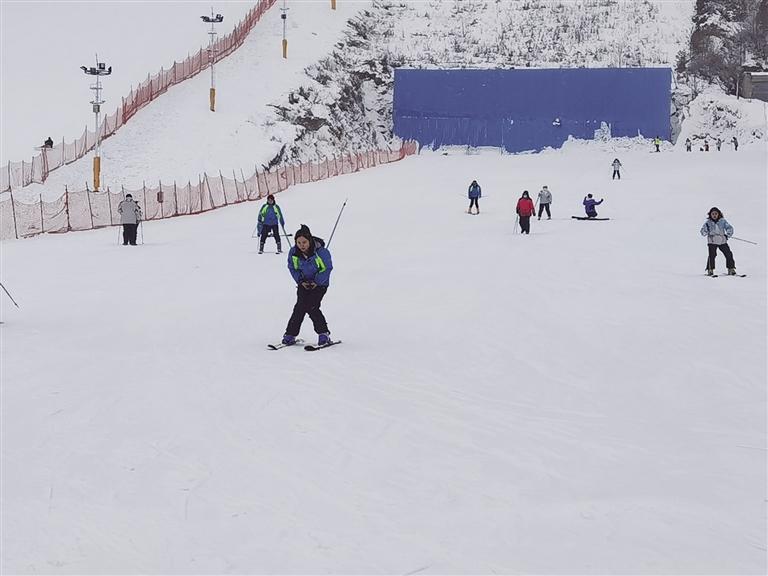 接著來到興隆山滑雪場,這里是冰雪運動愛好者的歡樂天地?;﹫鼋?jīng)理賈青云介紹,該滑雪場占地超400畝,擁有5條初、中級滑雪道,是中初級滑雪愛好者的樂園,今年全新打造的兩萬平方米豪華“戲雪樂園”更是引人注目。“開業(yè)不到一個月,已接待游客一萬多人,周末日均客流量超一千,平日也有四、五百人,滑雪場可同時容納2000人滑雪。”賈青云表示,滑雪場近期推出了優(yōu)惠活動,原價128元的門票現(xiàn)只需88元,包含滑雪服和存衣柜的使用。值得一提的是,經(jīng)過改造升級后的滑雪場加入了波西米亞風格,設(shè)有拍照打卡地和咖啡廳,成為年輕消費者熱衷的網(wǎng)紅打卡點,游客在此不僅能滑雪,還能享受火鍋、烤肉等美食,體驗別樣的冬日休閑時光。