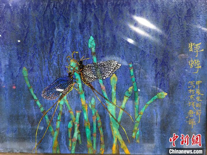 “蝶戀花”礦物顏料昆蟲復原畫作。任麗娜 攝