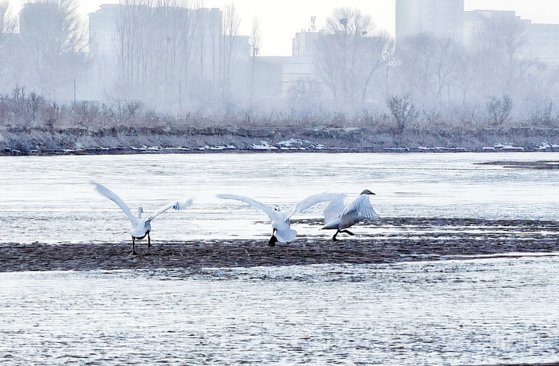 近日的一場(chǎng)降雪讓甘肅張掖黑河濕地國(guó)家級(jí)自然保護(hù)區(qū)高臺(tái)段銀裝素裹,在此棲息的大天鵝盡情在雪中引頸高歌、嬉戲歡鬧、振翅飛翔,成為一道亮麗的生態(tài)美景。
