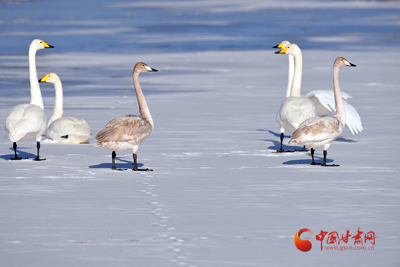 中國甘肅網(wǎng)2月7日訊(西北角·中國甘肅網(wǎng)記者 張慧雅 通訊員 何文麗 王建忠)近日,甘肅敦煌陽關國家級自然保護區(qū)管護中心工作人員通過視頻巡查,監(jiān)測到了11只越冬的國家二級保護野生動物——大天鵝。它們或在雪地里漫步,或梳理羽毛,姿態(tài)優(yōu)雅,為寒冷的冬日增添了一抹靈動的色彩。