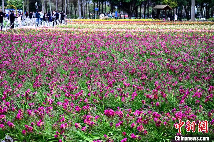 3月16日,福州花海公園魯冰花、小蒼蘭、油菜花等鮮花盛放,吸引了許多民眾前來漫步賞花,享受春天美好時光。中新社記者 張斌 攝