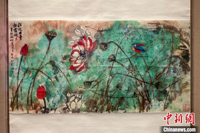 劉海粟《粗枝大葉荷花》。 中新網(wǎng)記者 王笈 攝