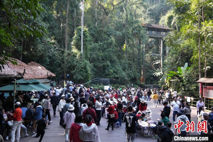 圖為游客游覽西雙版納望天樹景區(qū)?!⊥鞓渚皡^(qū) 供圖