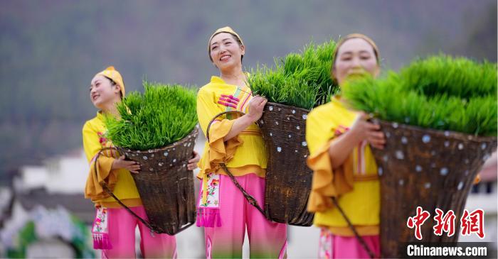 依托黎壩鎮(zhèn)層疊梯田的天然弧度與蒼翠山谷的立體聲場,該劇將鎮(zhèn)巴民歌、陜南民俗等非遺元素融入山水實景。春之序曲《山歌迎賓》中,油菜花海間百人山歌陣,以原生態(tài)多聲部民歌編織迎賓盛景;夏之華章《綠的交響》里,非遺薅草鑼鼓與現(xiàn)代音樂碰撞出農耕文明的力與美;秋之禮贊《金的節(jié)奏》在陽光下呈現(xiàn)打連枷聲浪與稻浪共舞的豐收奇景;冬之情書《紅的濃情》則通過圍爐陜南說唱,在吊爐光影間訴說巴山兒女的熾熱情懷。