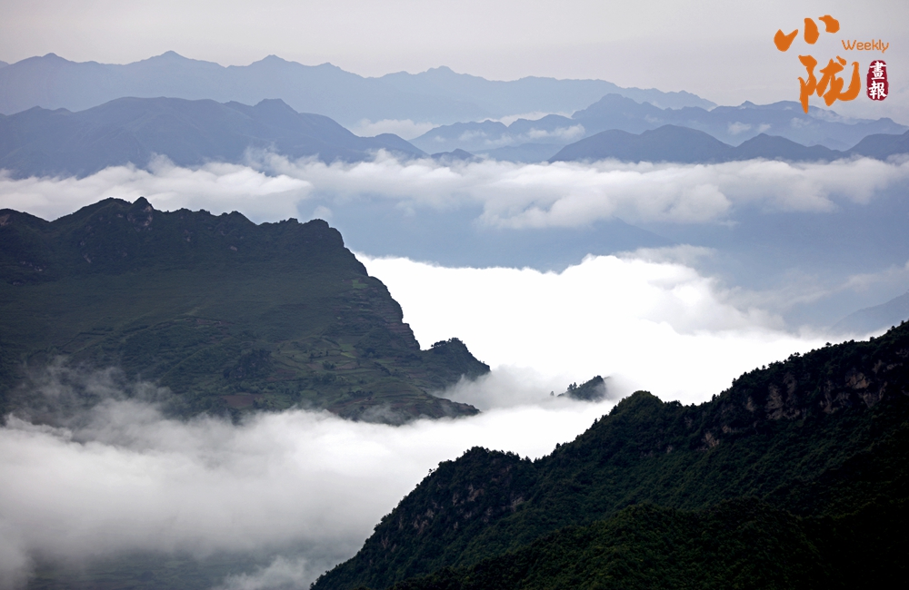 大雨過后,波瀾壯闊的云海層層疊疊,猶如萬馬奔騰,時而風(fēng)平浪靜,浩如煙海;時而沒過山間,猶如涌動的潮水;時而悄悄褪去,猶如飄動的面紗,宛若人間仙境。