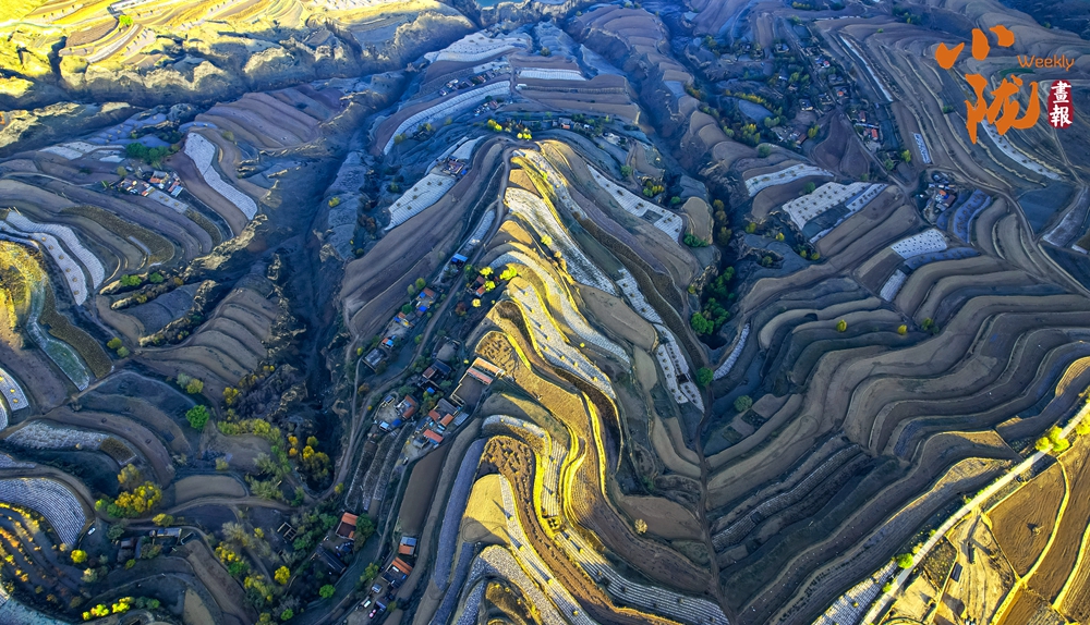 萬畝梯田錯落有致,層層彎曲盤繞,從高空俯瞰猶如大地“指紋”。當?shù)亟?jīng)過多年的小流域治理,昔日的荒山禿嶺,今日滿目綠意盎然。那些蜿蜒曲折的梯田線條猶如畫家筆下的抽象作品,充滿了韻律感和節(jié)奏感。尤其是在清晨或傍晚時分,柔和的光線將梯田勾勒得更加立體,光影交錯之間,每一幀畫面都像是一張精美的攝影作品。