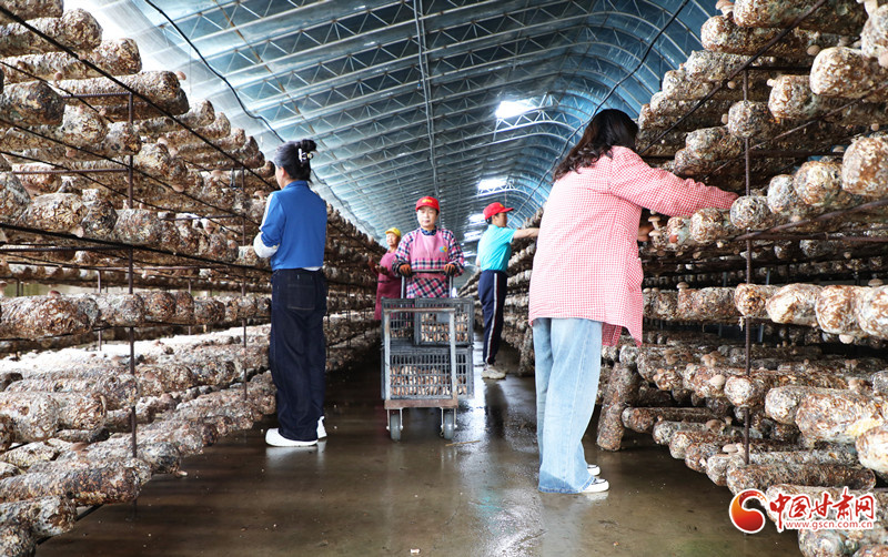 6月26日,在民樂工業(yè)園區(qū)的一家食用菌生產(chǎn)溫室內(nèi),工人們正在采摘成熟的香菇和靈芝,包裝完成后將運(yùn)往青海、寧夏、新疆等地銷售。