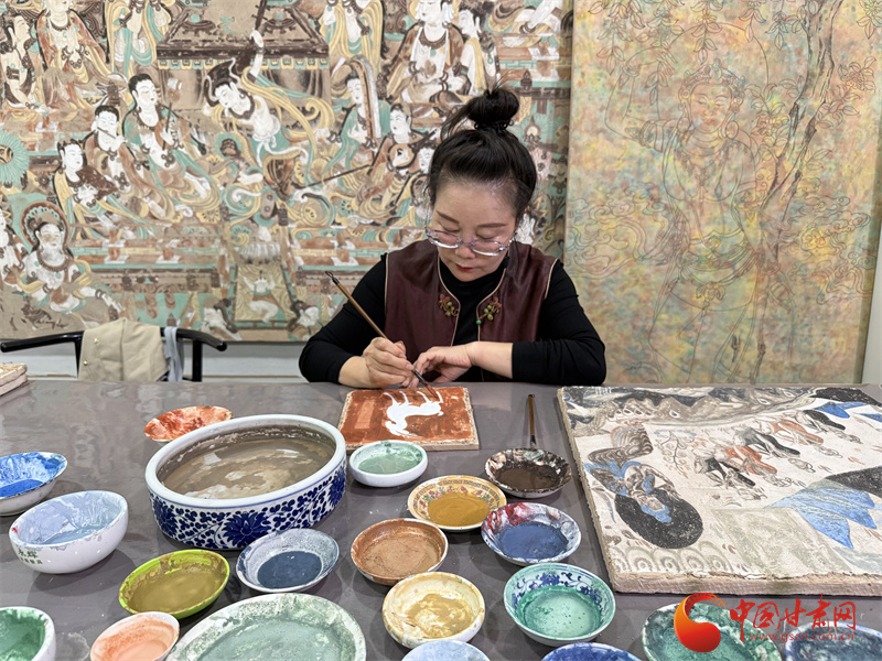 10月31日,由中央網(wǎng)信辦網(wǎng)絡傳播局、國家文物局政策法規(guī)司指導,中國互聯(lián)網(wǎng)發(fā)展基金會特別支持,甘肅省委網(wǎng)信辦、省文物局主辦,張掖、嘉峪關(guān)、酒泉市委網(wǎng)信辦與敦煌研究院、中國甘肅網(wǎng)、鳳凰網(wǎng)甘肅頻道共同承辦的“何以中國|壁畫里的中國·當AI遇見小飛天”網(wǎng)絡主題宣傳活動采訪了敦煌石粉彩繪技藝的非遺傳承人王亞林。