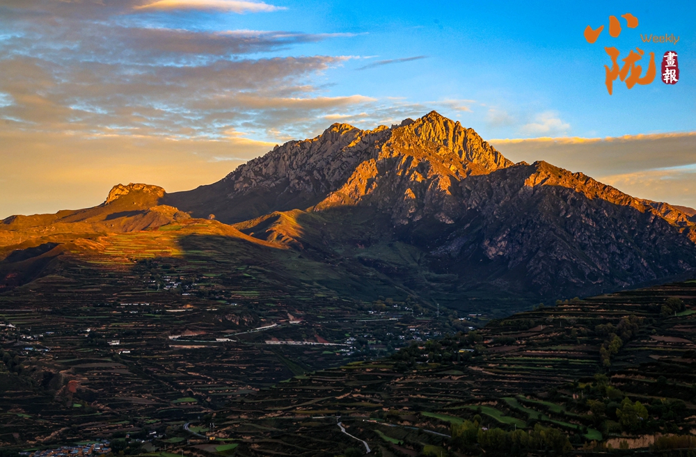 夕陽的余暉照在山頂,這種光影交錯的效果,為山巒增添了神秘感。山腰以下則林木蔥籠,色彩斑斕,村落依山傍水、古樸自然,像一幅被歲月輕輕展開的水墨長卷。