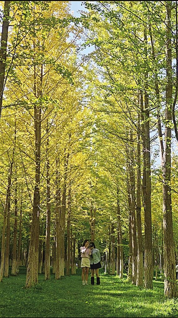 初秋時(shí)分,市民在銀杏樹下拍照打卡