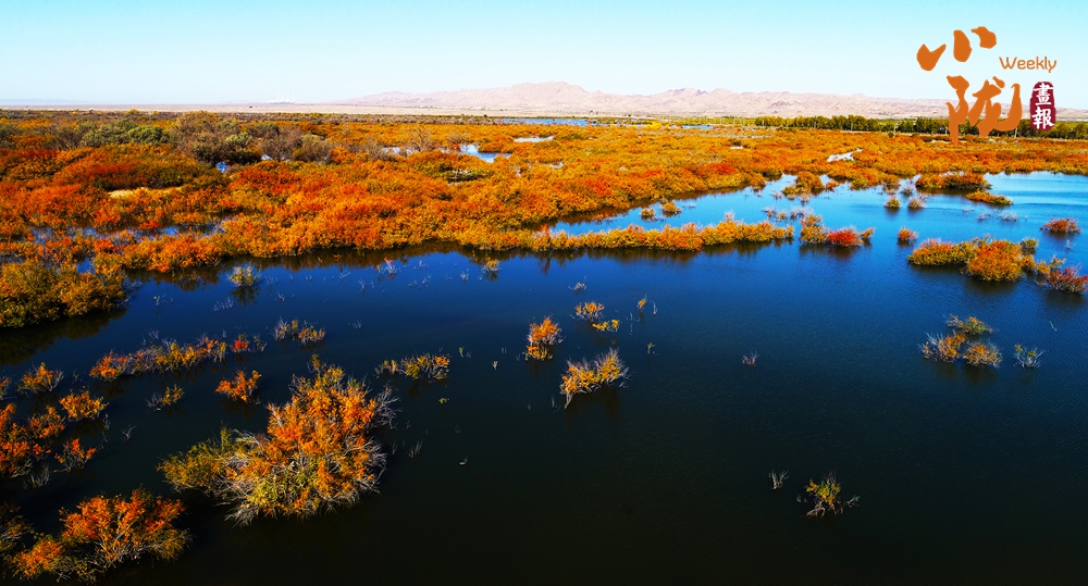 每到冬季,濕地的胡楊換上金黃盛裝,與穿梭其間的湖水、溫暖柔和的蘆葦蕩,繪制成一幅水墨長卷,將初冬的浪漫鋪滿天地。