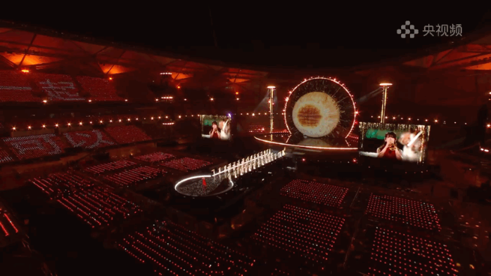 光,也是這場敘事中無聲的語言。燈光總監(jiān)董江從鴻蒙系統(tǒng)的開機(jī)動畫中汲取靈感,將極具辨識度的“星環(huán)”造型貫穿整個(gè)場館空間。設(shè)計(jì)團(tuán)隊(duì)不僅用數(shù)百臺燈光設(shè)備在舞臺上空構(gòu)建了一個(gè)直徑31米的超級光環(huán),更在體育場內(nèi)豎立起8組高達(dá)24米的立體燈光塔,讓每一位觀眾都被籠罩在“在一起”的視覺敘事之中。據(jù)總導(dǎo)演田梅介紹,那打動了無數(shù)網(wǎng)友、點(diǎn)綴在觀眾席上的四萬盞燈球,并非輕易鋪就的背景,而是歷經(jīng)超百位工人三次接力安裝、反復(fù)調(diào)試才得以呈現(xiàn)的呼吸光海。最初,這一設(shè)計(jì)曾因執(zhí)行難度而面臨調(diào)整,但在總導(dǎo)演田梅的堅(jiān)持下,最終被完整保留。在她看來,這片星海是對盛典主題內(nèi)核的生動詮釋:“‘在一起,就可以’不僅是一句口號,更是對這個(gè)時(shí)代最溫暖的注腳。它告訴我們:再遙遠(yuǎn)的夢想,也終將在并肩同行中,變得觸手可及。”隨著節(jié)目播出,燈球呈現(xiàn)出“在一起,就可以”“鴻蒙星光盛典”等字符,明亮而浪漫。四萬星光分散在每一張座椅上,如同散落在千行百業(yè)、千家萬戶中的每一個(gè)開發(fā)者與用戶;它們又能連成一片星海,展現(xiàn)出“在一起,就可以”的力量。