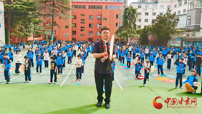 “武山旋鼓舞歷經(jīng)千年傳承。我與它的緣分,始于童年校園里那一聲聲清脆的鼓點(diǎn)。”國家級社會體育指導(dǎo)員、中國少數(shù)民族體育協(xié)會兵道委員會理事、甘肅省隴原拳師、武山縣十佳渭川文化傳承保護(hù)人羅榮泉說,“目前,我已在灘歌中心幼兒園、灘歌小學(xué)、天水市實(shí)驗(yàn)小學(xué)開始手把手教孩子們傳承這門非遺技藝。羊皮鼓在手中旋轉(zhuǎn),鼓點(diǎn)鏗鏘有力,舞步剛勁灑脫,那充滿力量與韻律的表演,深深烙印在我心底。”
